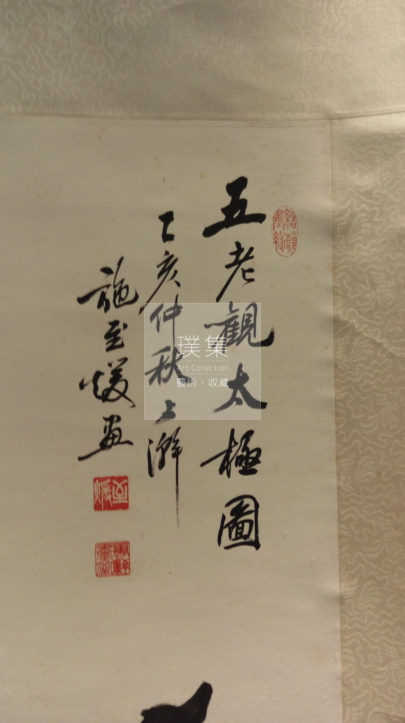 產品分類 書畫Chinese Painting & Calligraphy 編號:A100009 五老觀太極 年代:1994作者:施至媛老師(已故)圖稿尺寸:69cm × 84cm裱框尺寸:133cm × 190cm 我有興趣