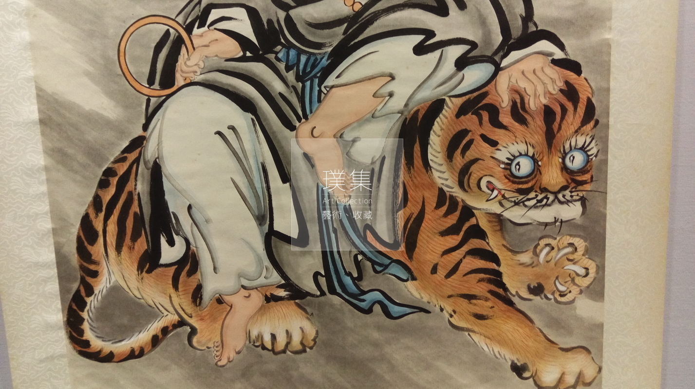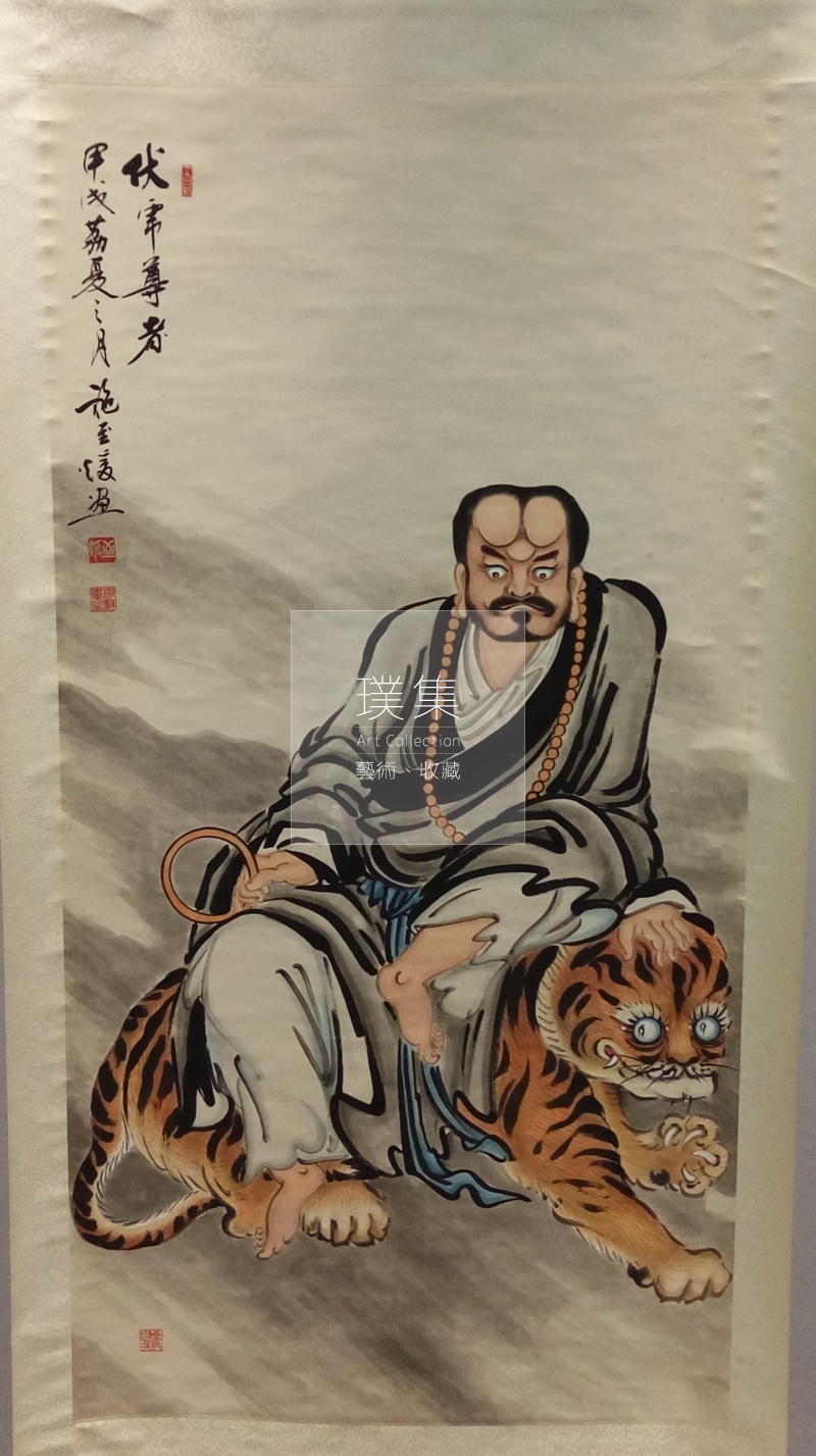 產品分類 書畫Chinese Painting & Calligraphy 編號:A100014 伏虎尊者 年代:1994作者:施至媛老師(已故)圖稿尺寸:68.5cm × 81cm裱框尺寸:135cm × 200cm 我有興趣